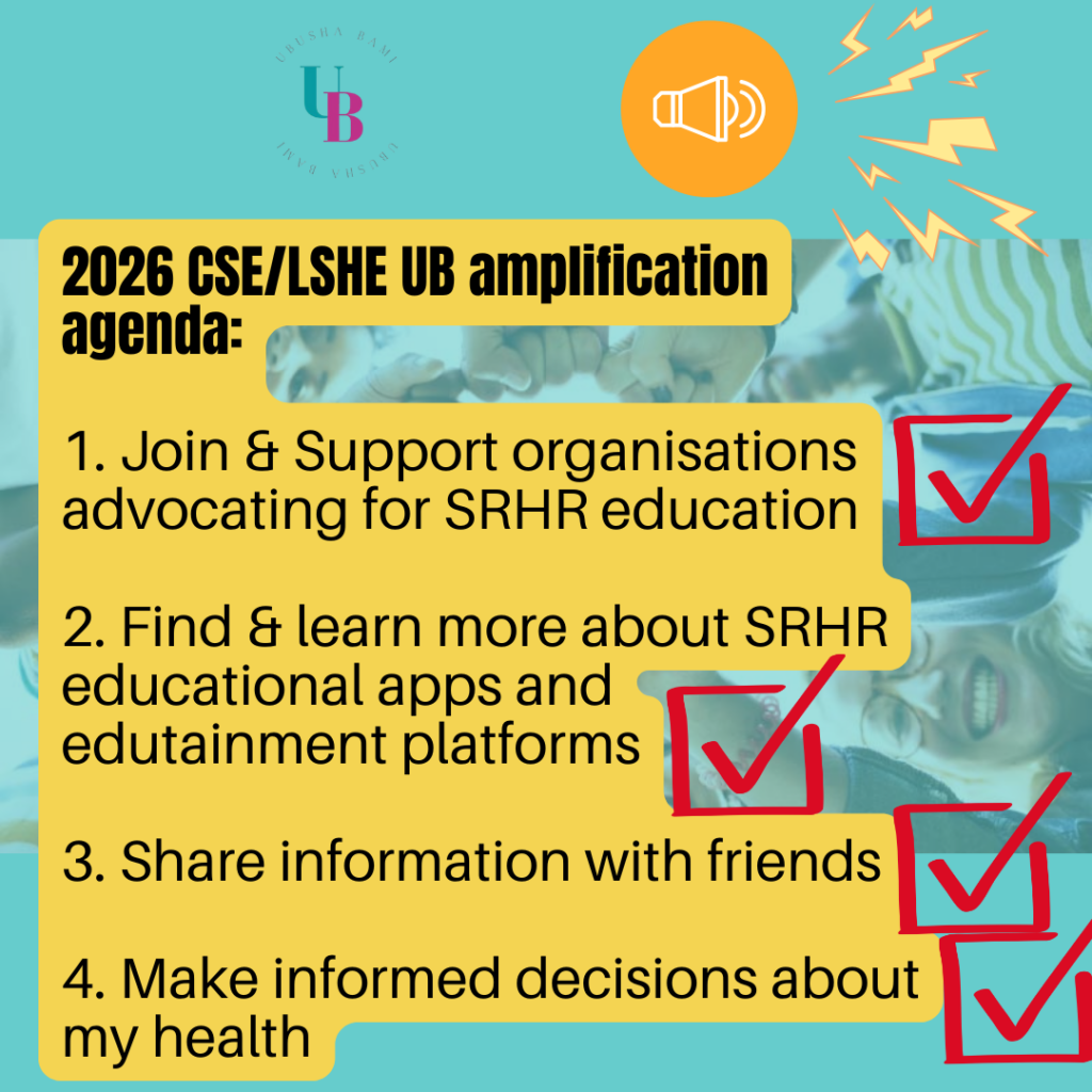 Amplification is not merely a visual change; it is an action. At Ubusha Bami, in partnership with young people across Africa, we aim to maintain an ongoing conversation about CSE and LSHE throughout 2026. Our intention is to keep momentum and drive the agenda for fact-based, age-appropriate, and culturally relevant sexual and reproductive health and rights (SRHR) information, delivered by youth for youth.
